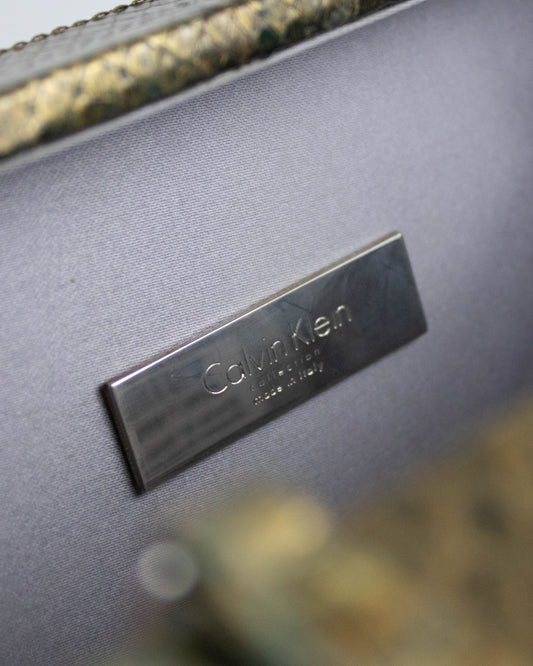 Vintage 2000s Calvin Klein Collection Python Leather Bronze/Gold Clutch Bag