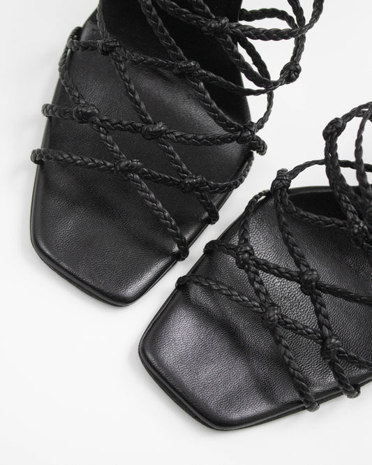 Vintage F/W 2002 Gucci by Tom Ford Black Braided Leather Stiletto Sandals / 37 (US 7)