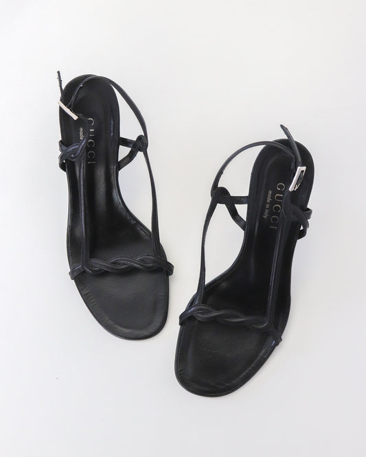 Vintage Gucci by Tom Ford Black Leather Sandals Braided Detail / 37.5 ( US 7.5)