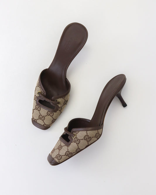 Vintage 2000s Gucci Classic GG Monogram Kitten Heel Mules / 36 (US 6)