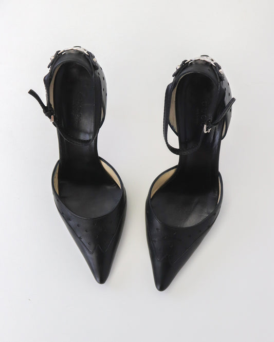 Vintage Gucci Black Leather GG Interlocking Logo Mary Jane Pumps / 36.5 (US 6.5)