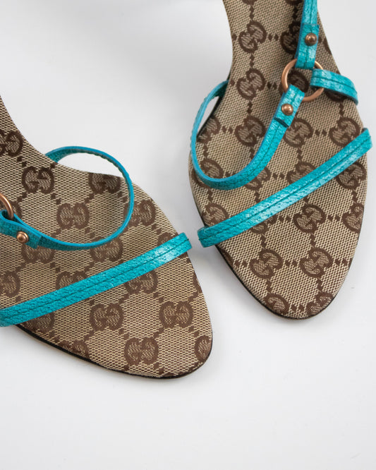 Vintage Gucci S/S 2005 Black Gold Python Mule Heels / 37 (US 7)