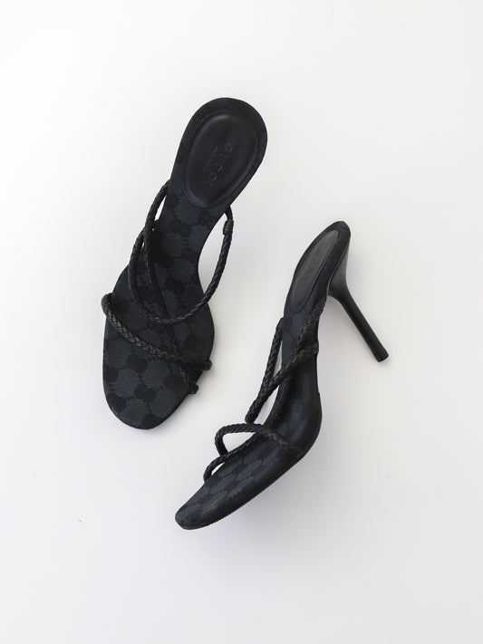 Vintage Gucci GG Logo Monogram Mules Pointed Toe Heels Strappy Pumps / 37.5 (US 7.5)