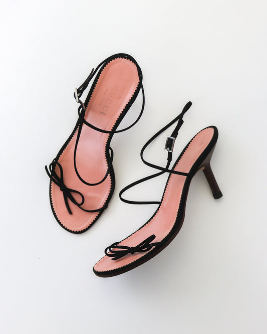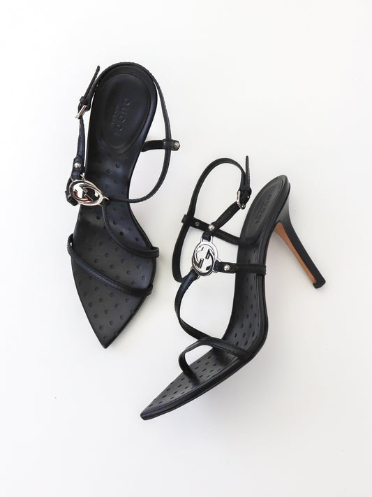 Vintage Gucci by Tom Ford Leather Sandals Strappy Heels Metal Horsebit Logo / 37 (US 7)