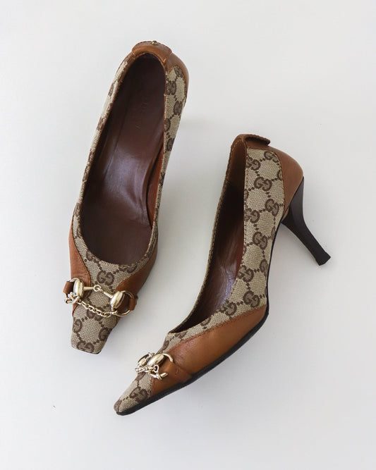 Vintage 2000s Gucci Beige GG Monogram Classic Pointed Toe Pumps / 37 (US 7)