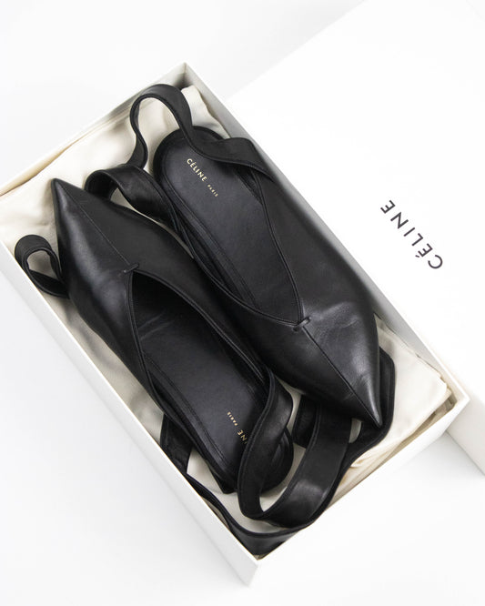 Celine by Phoebe Philo Soft Black Leather Ankle Wrap Flat Mules / 37 (US 7)