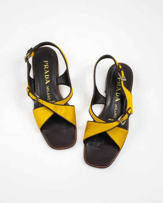 Vintage Prada S/S 1996 Yellow Pony Hair Sandals / 37 (US 7)