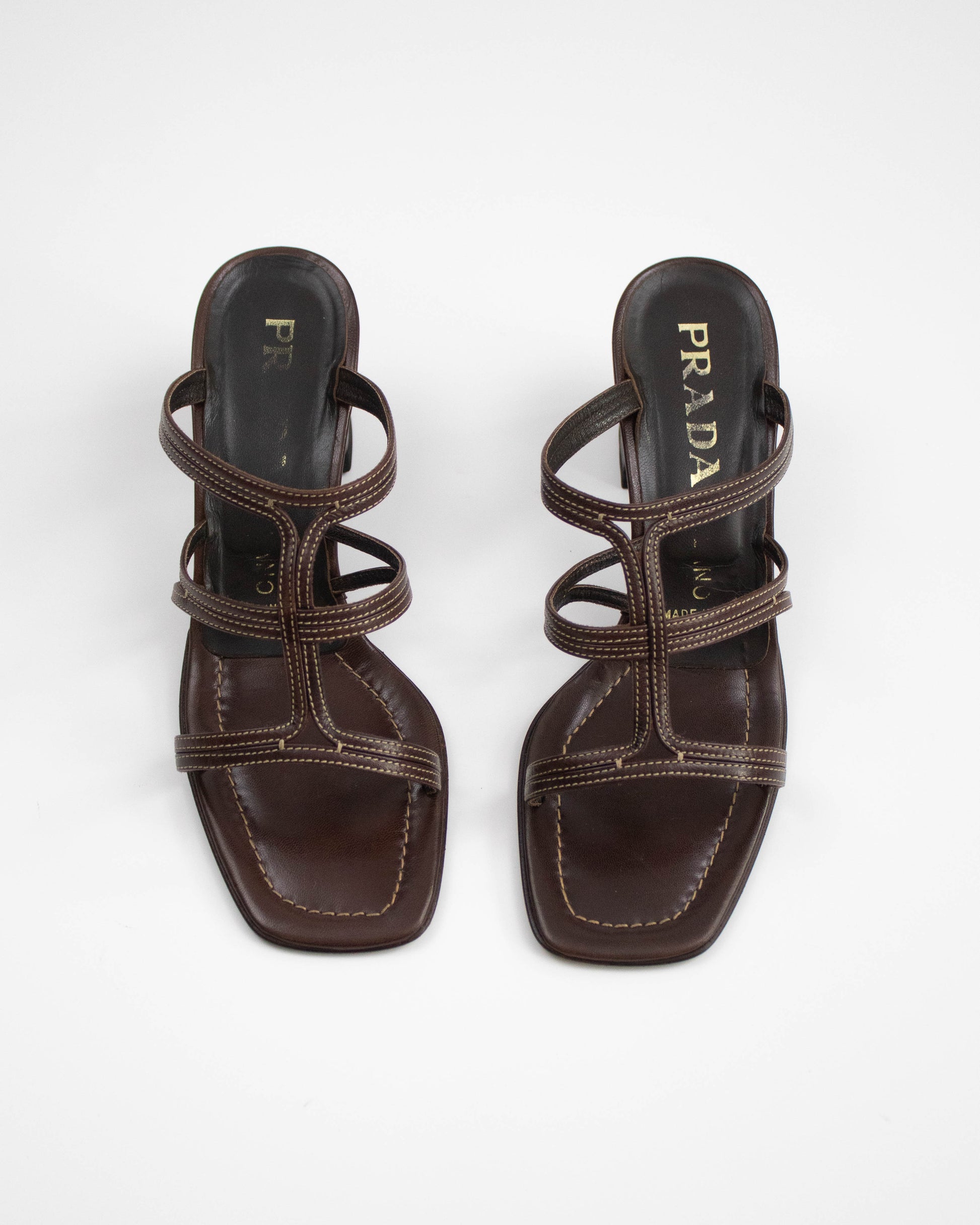 Vintage 1990s Prada Brown Block Heel Mules / 37 (US 7)