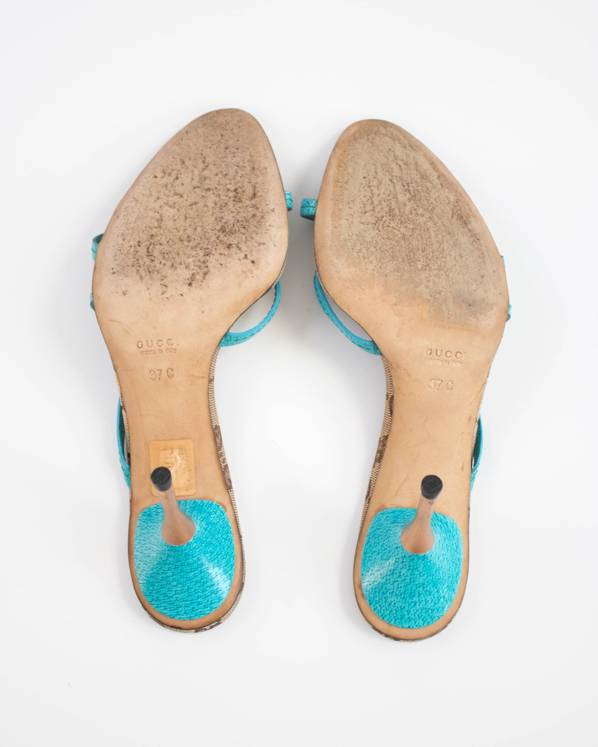 Vintage Gucci Classic GG Monogram Turquoise Leather Mule Heels / 37 (US 7)