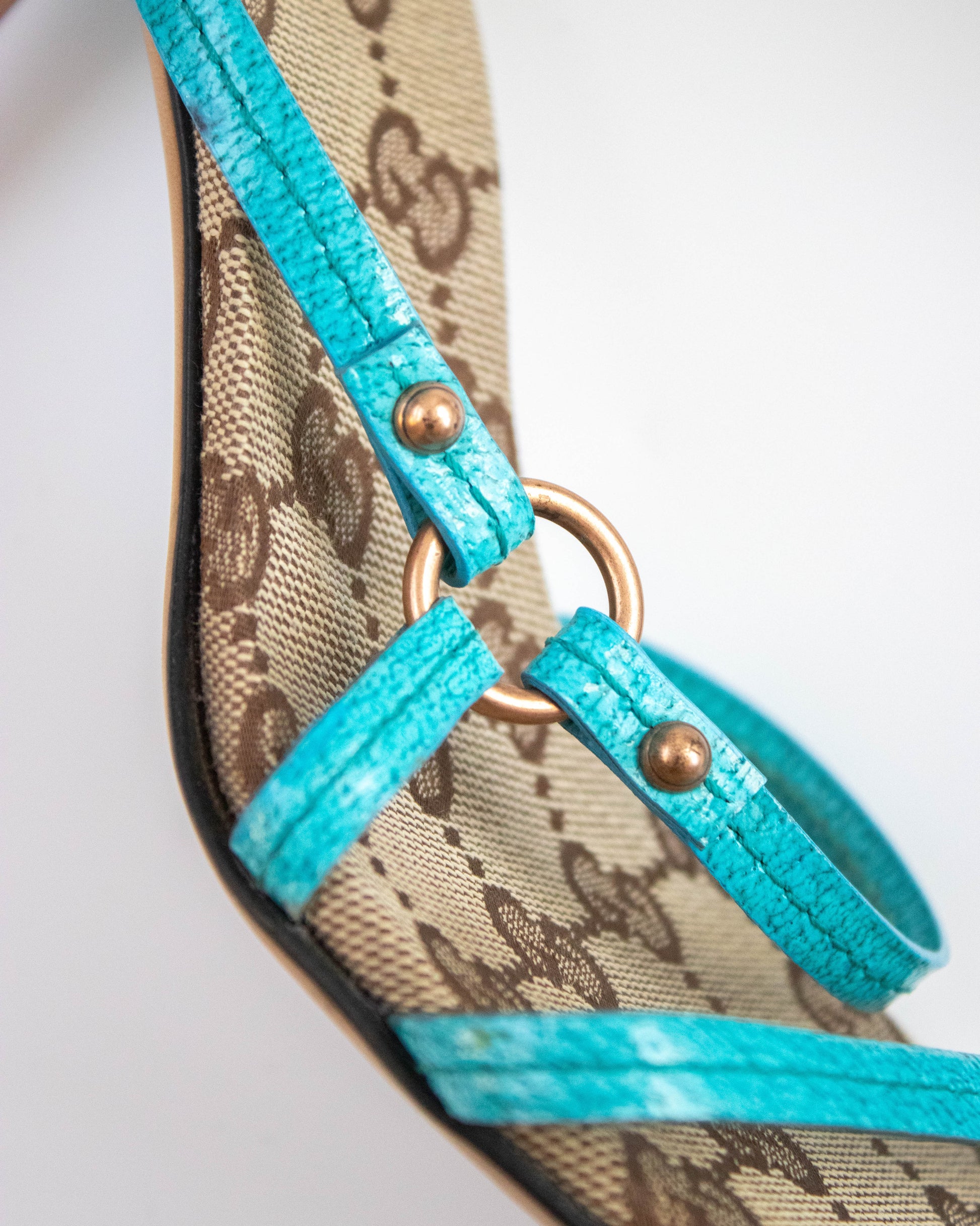 Vintage Gucci Classic GG Monogram Turquoise Leather Mule Heels