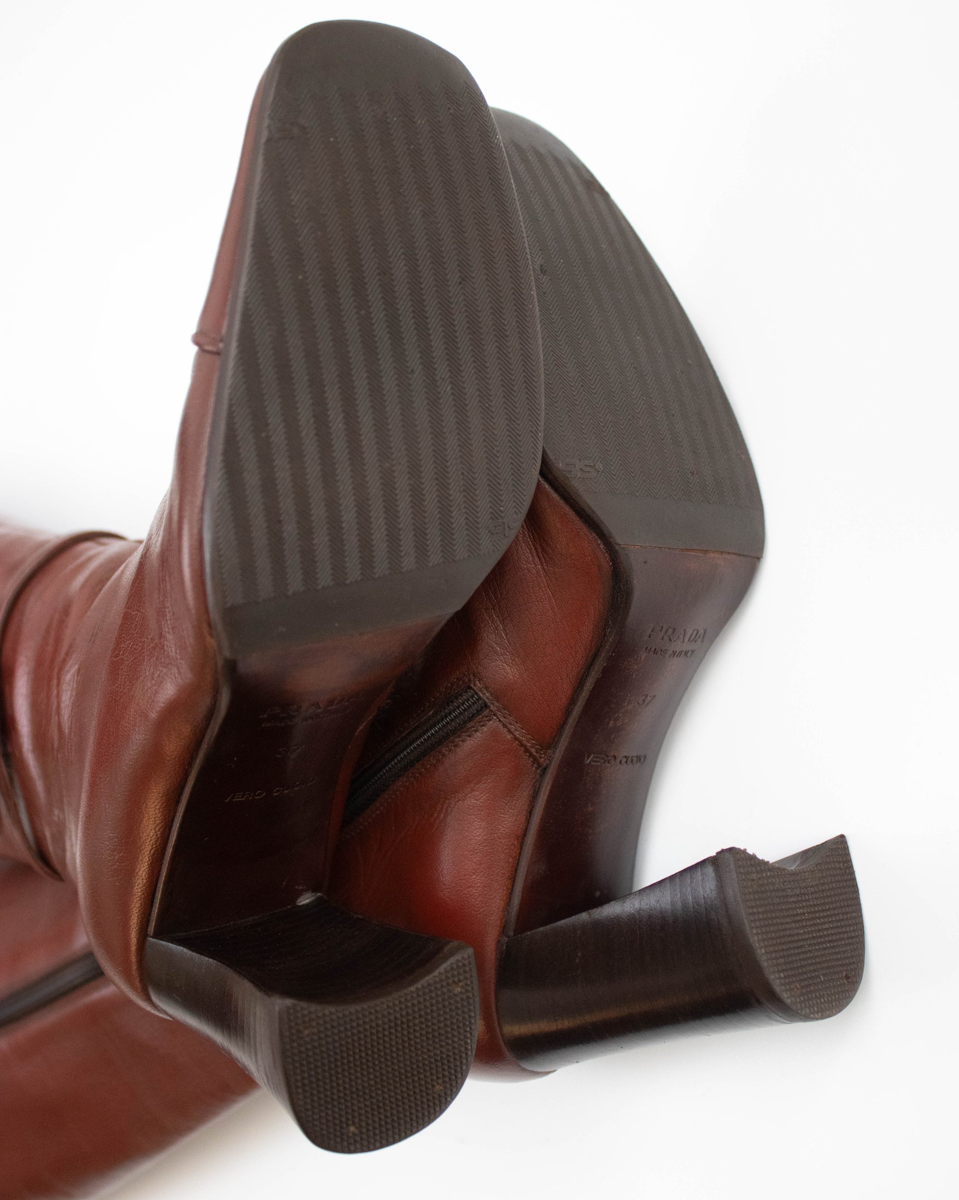 Vintage 1990s Prada Brown Block Heel Boots