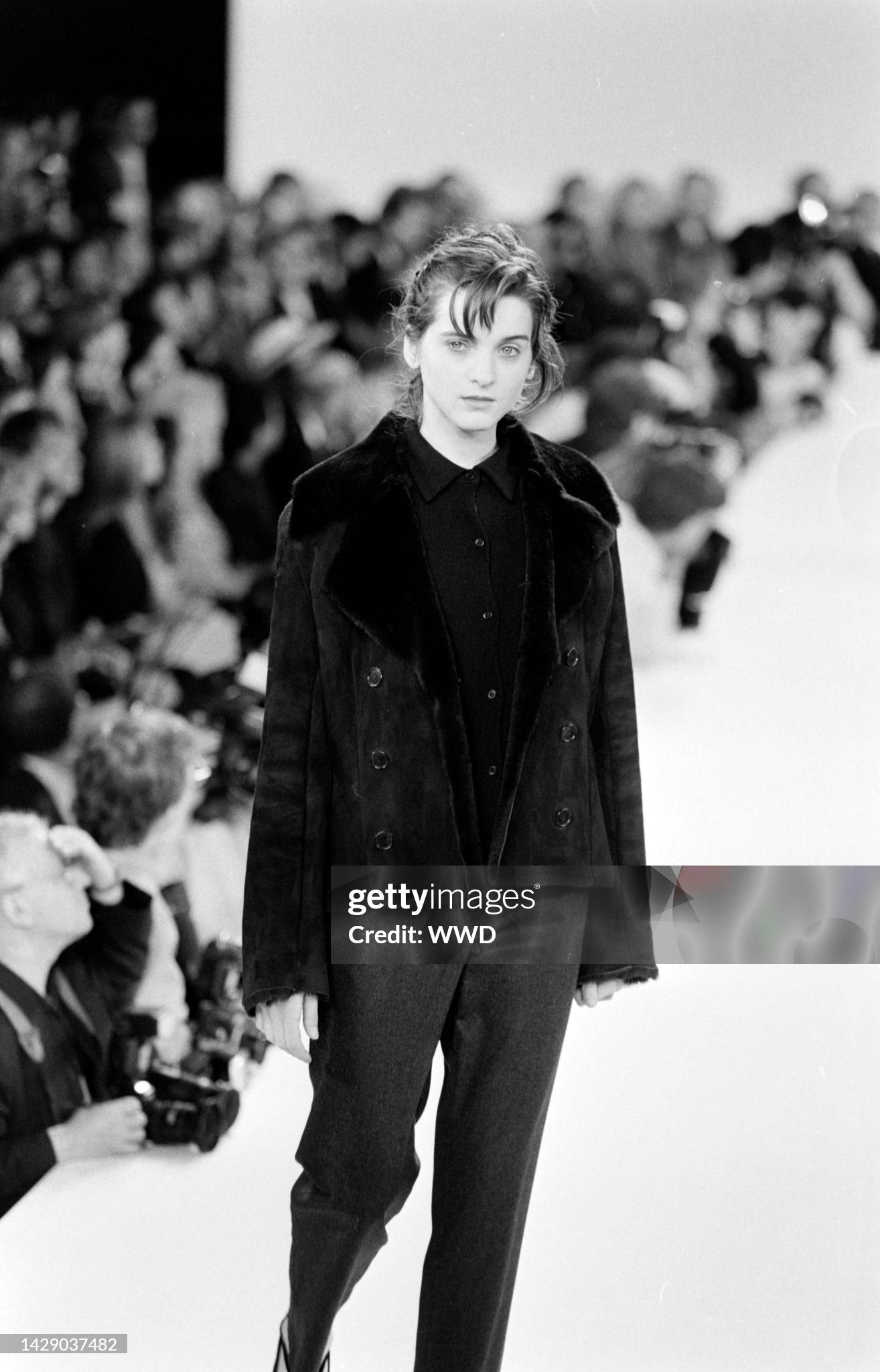 Vintage F/W 1994 Calvin Klein Collection Brown Double-Breasted Shearling Jacket/Coat