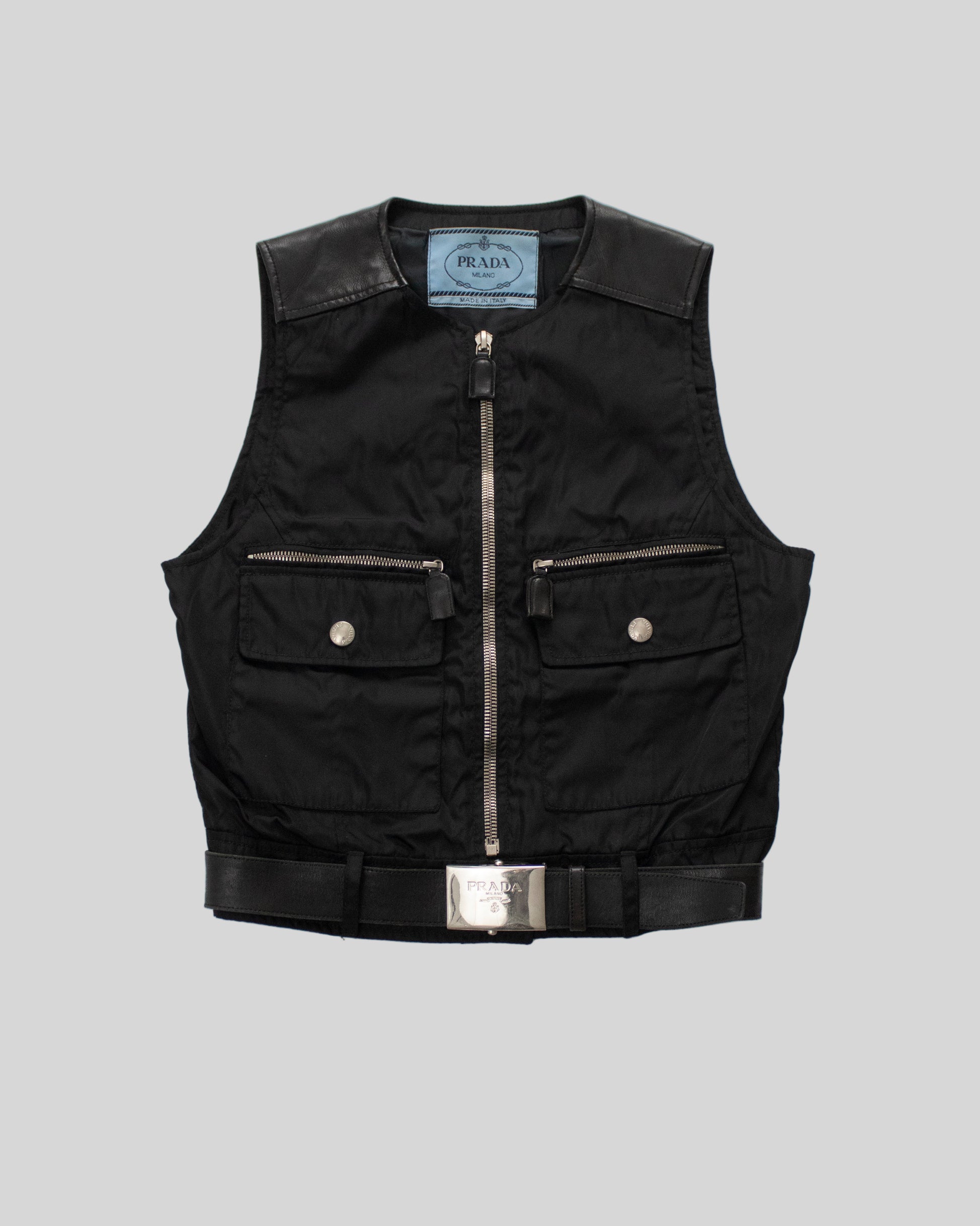 Vintage F/W 1994 Prada Leather Nylon Runway Belted Vest