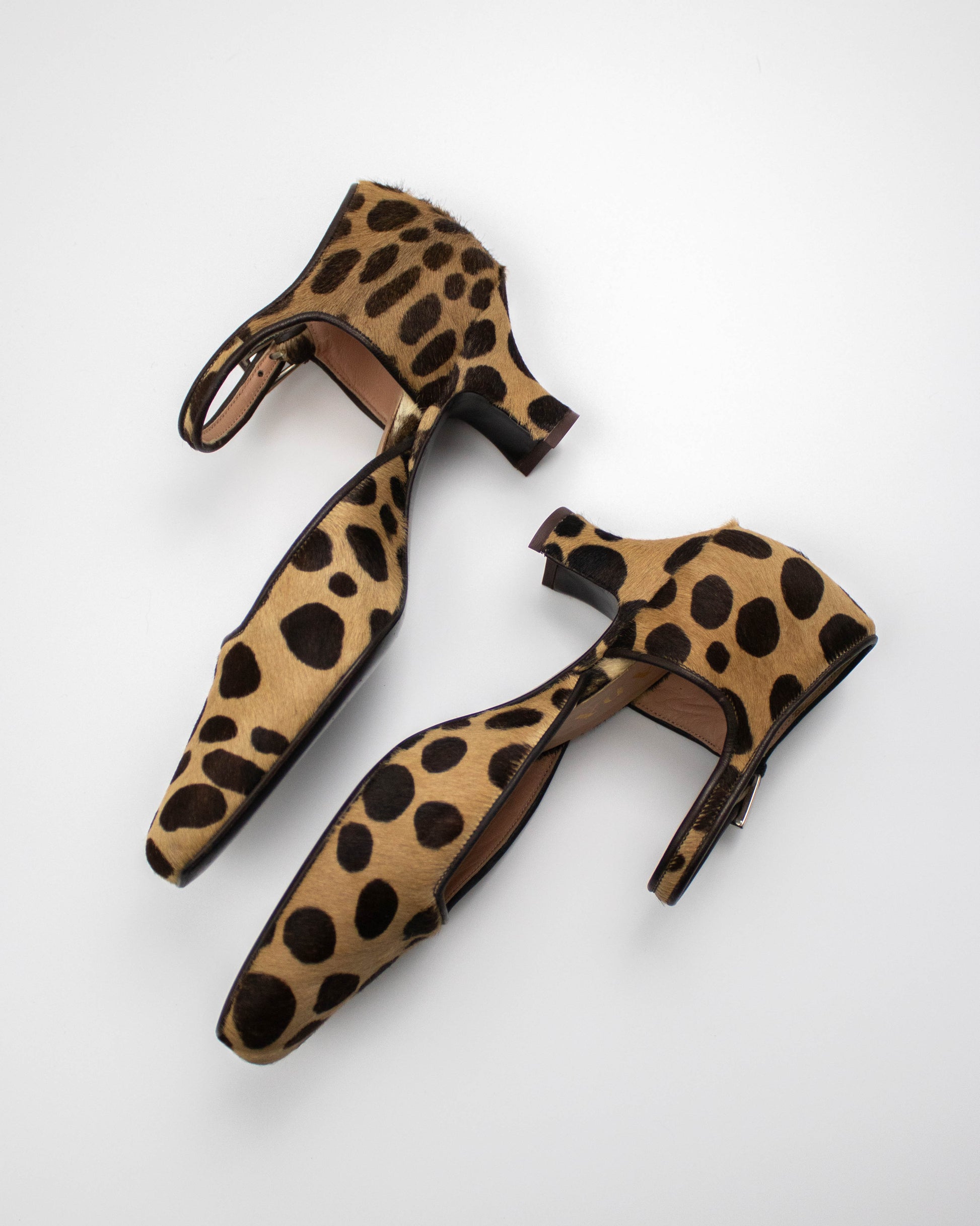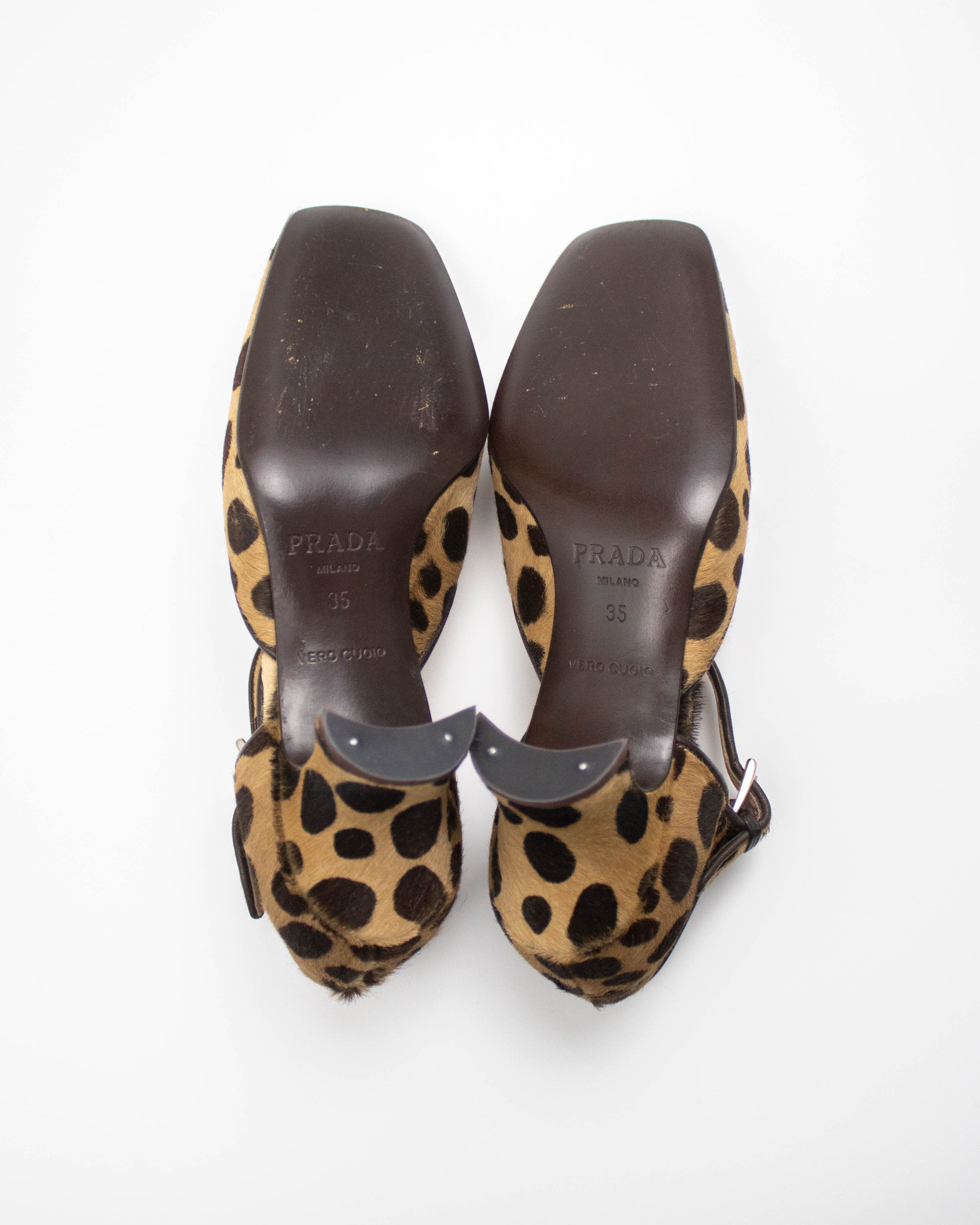 Vintage F/W 1995 Prada Leopard Print Pony Hair Mary Jane Heels