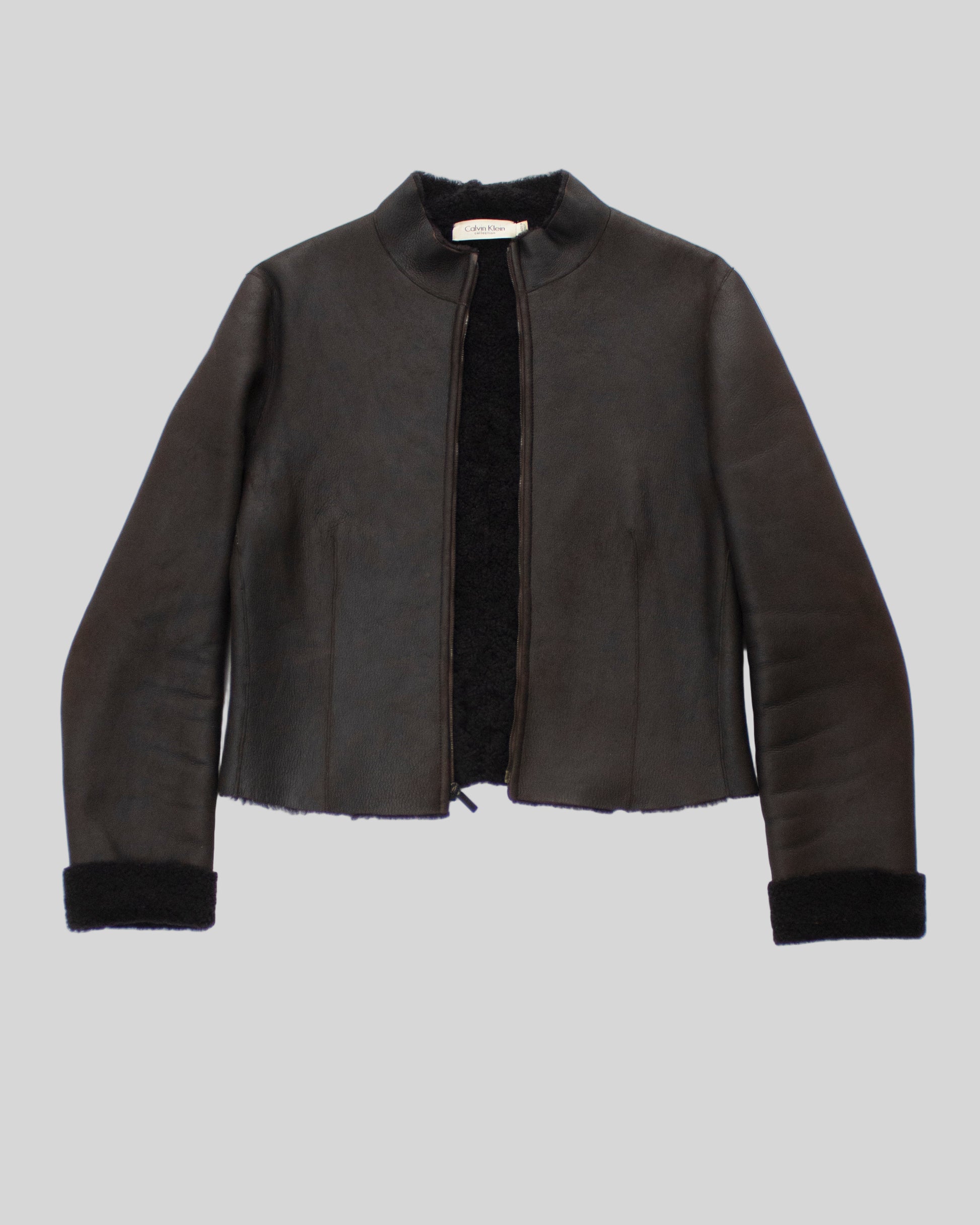 Vintage F/W 2001 Calvin Klein Collection Chocolate Brown Shearling Jacket / S-M