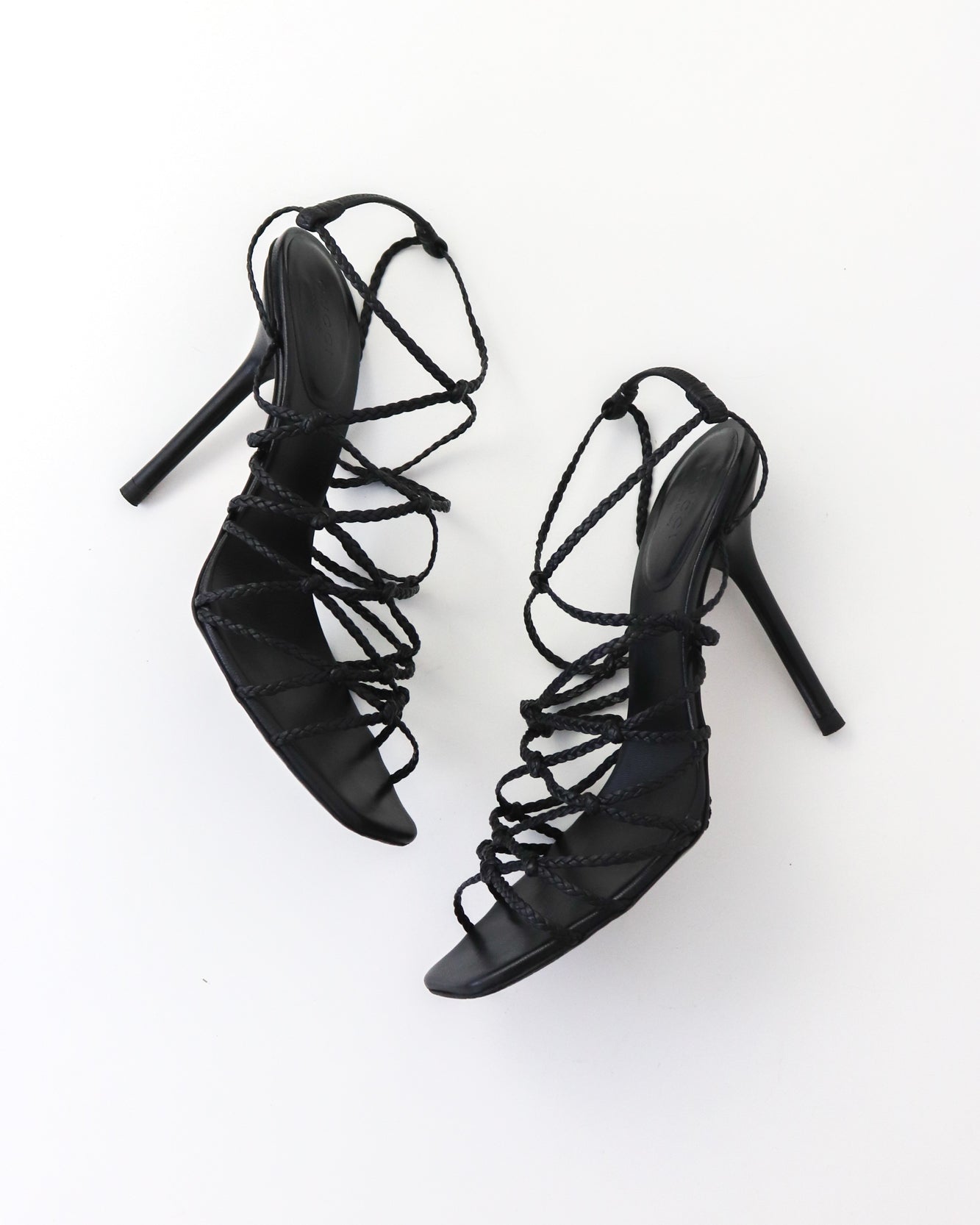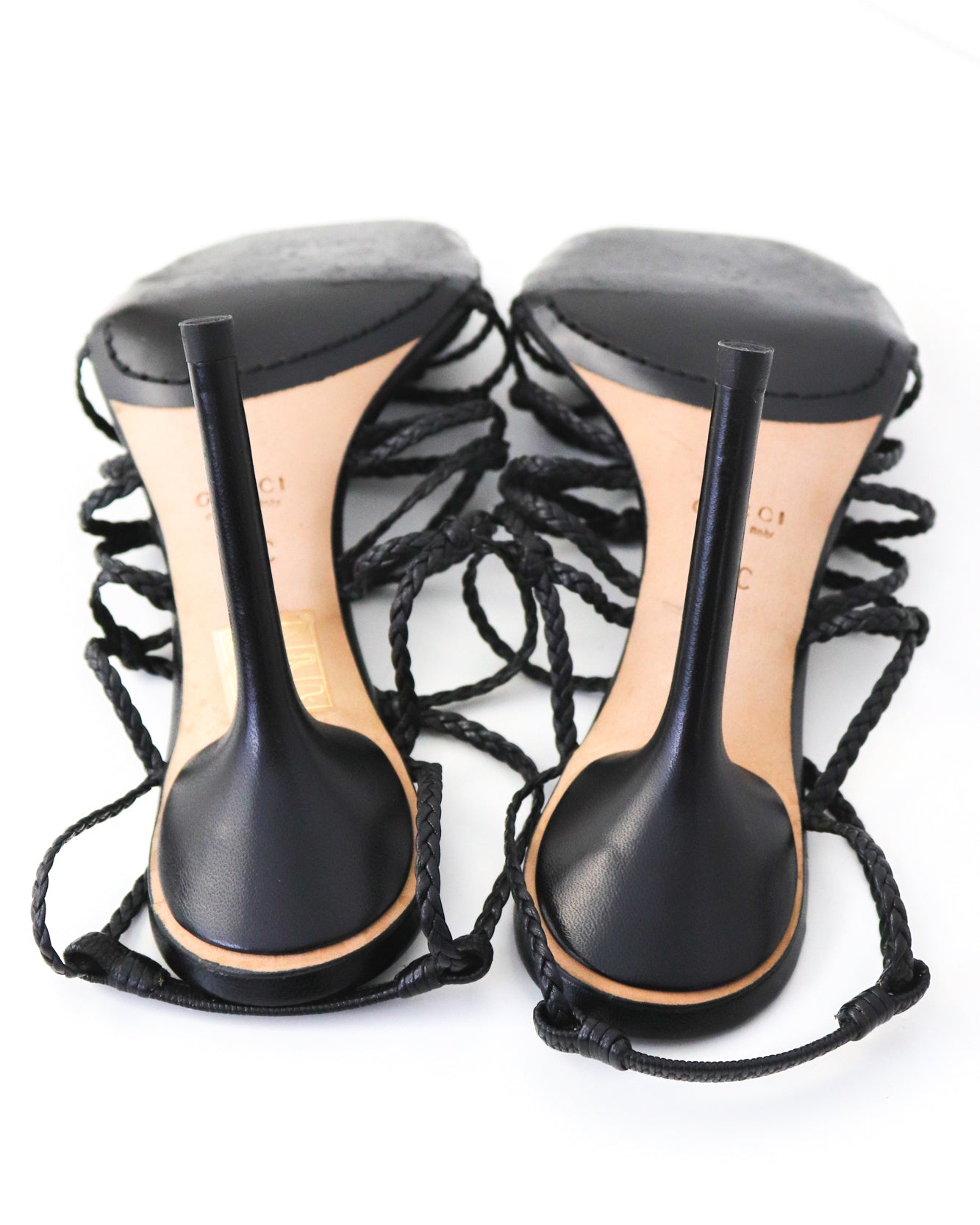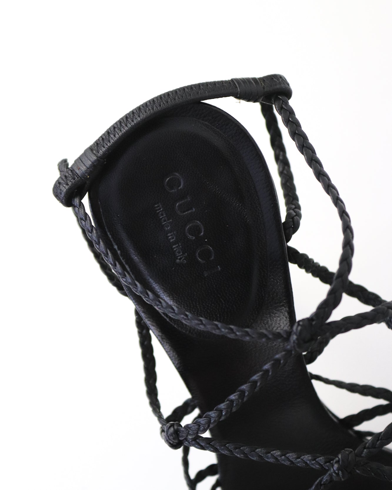 Vintage F/W 2002 Gucci by Tom Ford Black Braided Leather Stiletto Sandals / 36 (US 6)