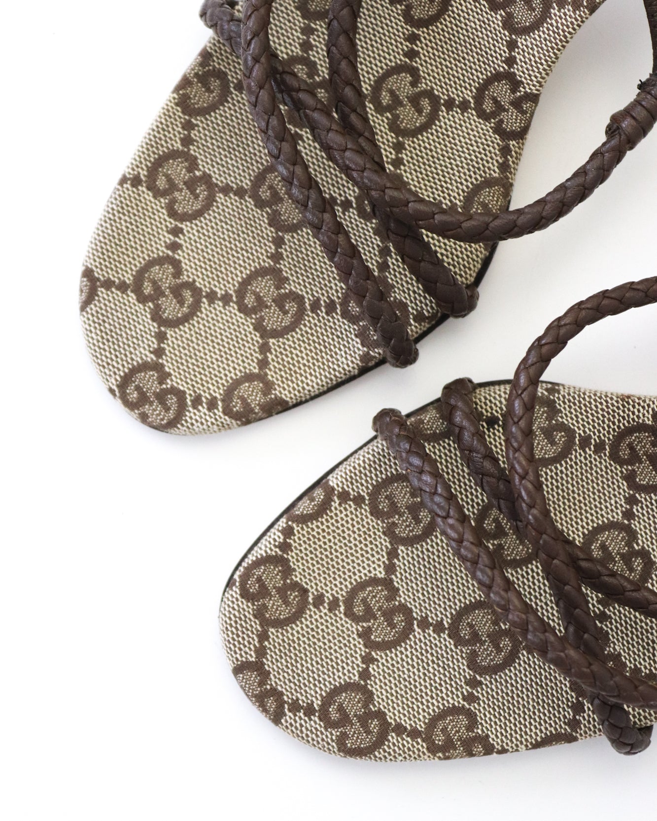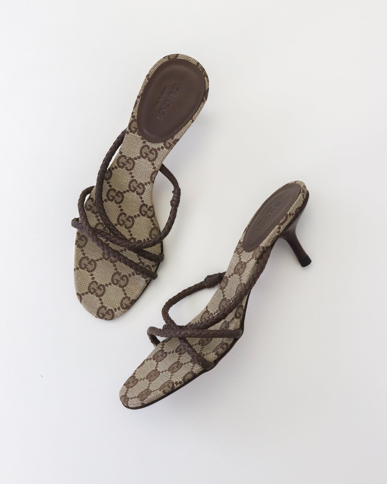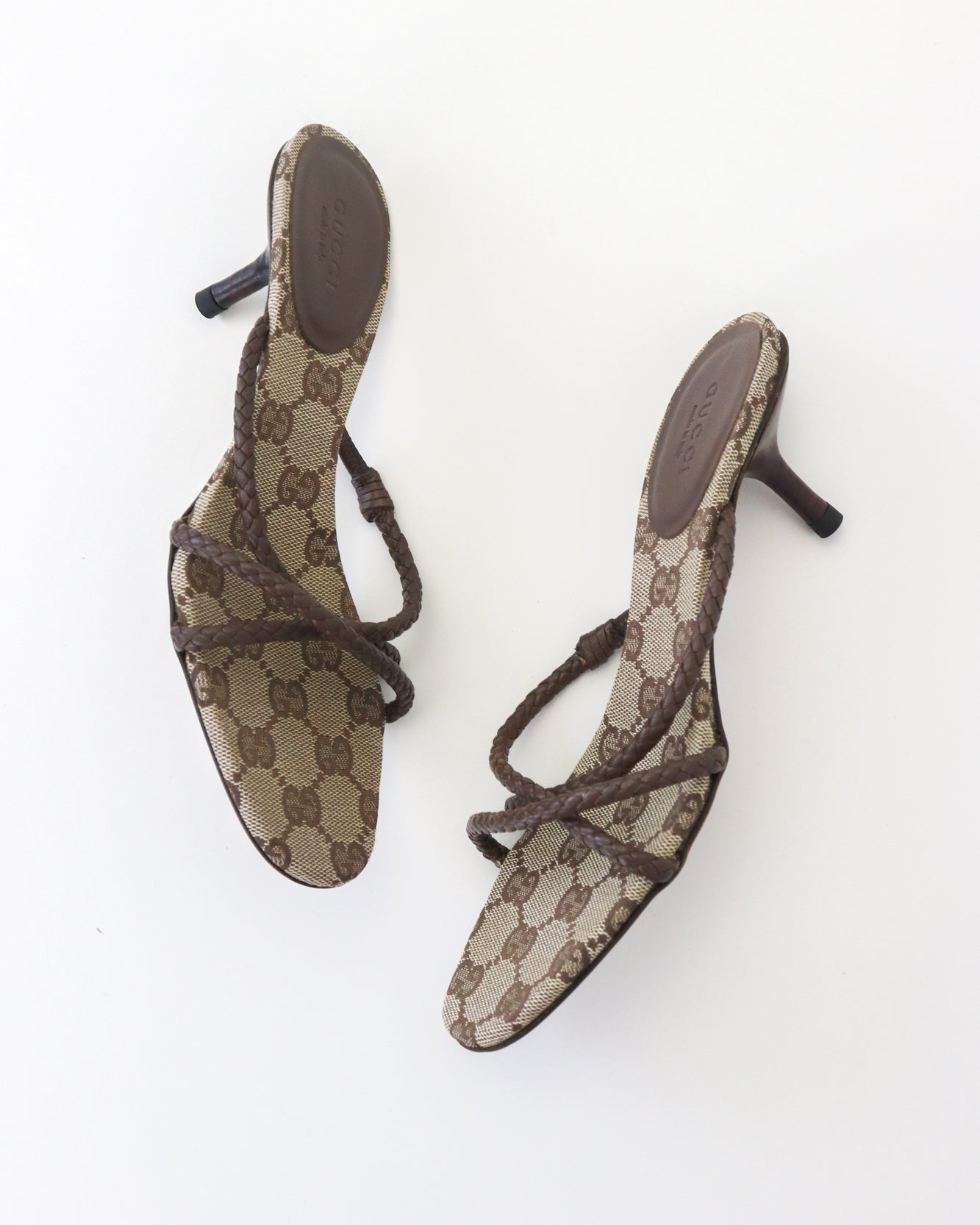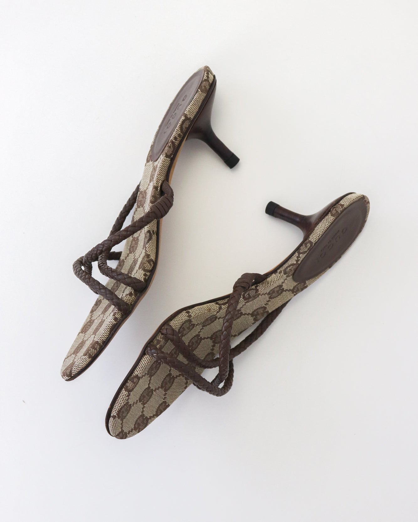 Vintage F/W 2002 Gucci by Tom Ford GG Monogram Braided Leather Kitten Heel Mules