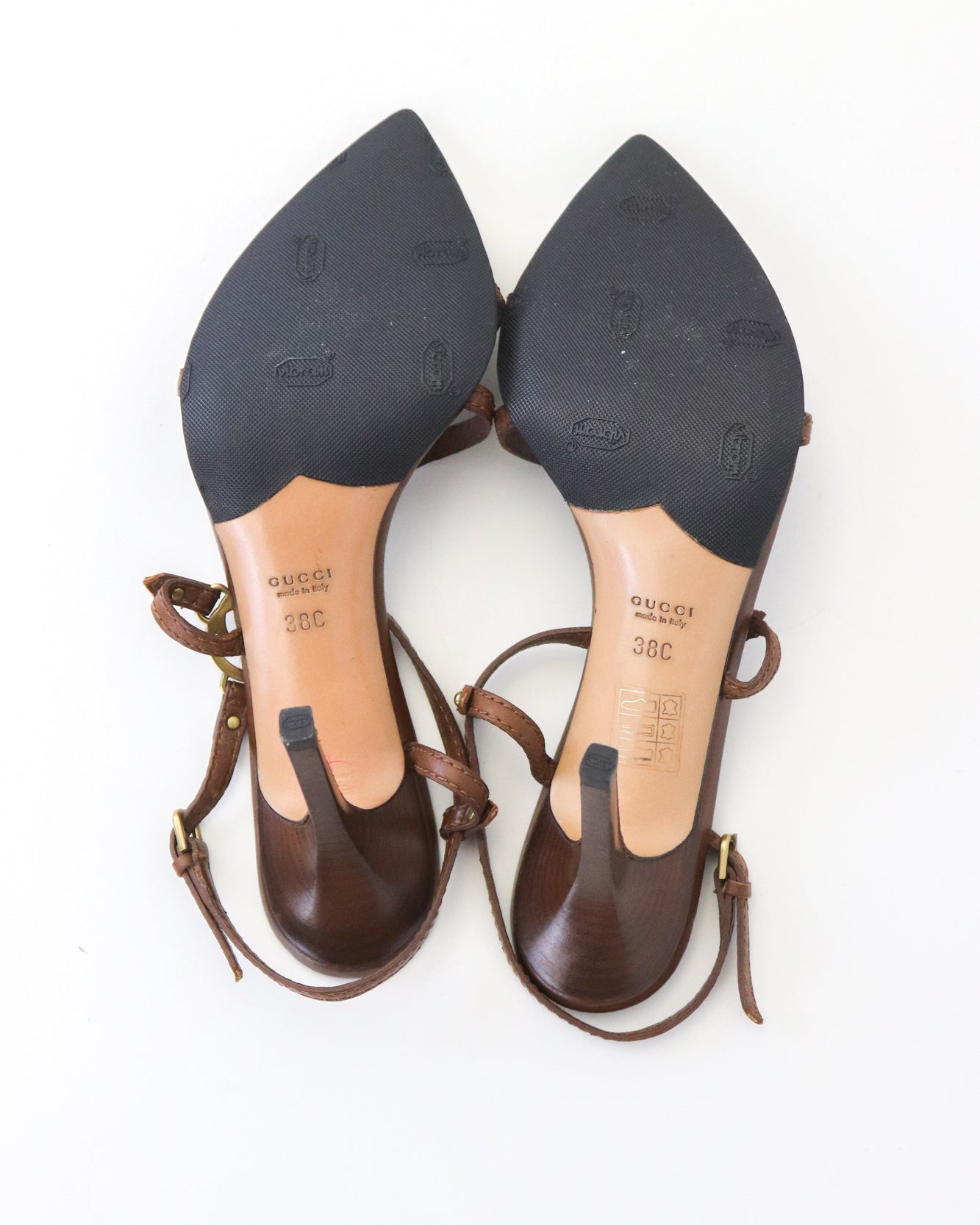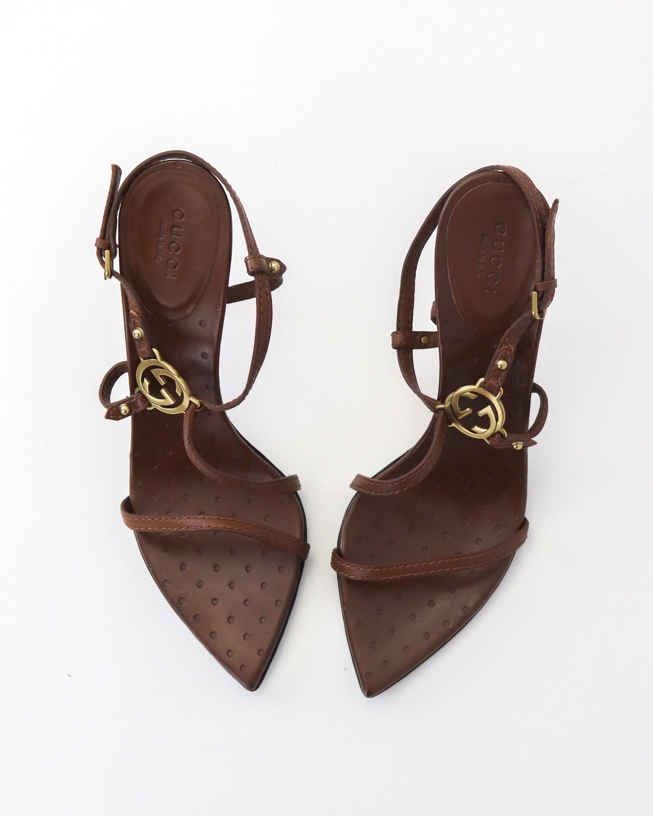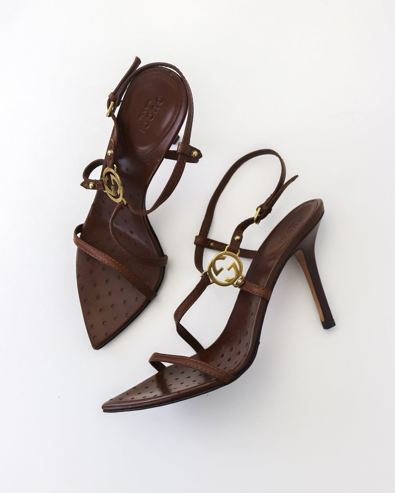 Vintage Gucci by Tom Ford Brown Interlocking G Logo Strappy Sandals / 38 (US 8)