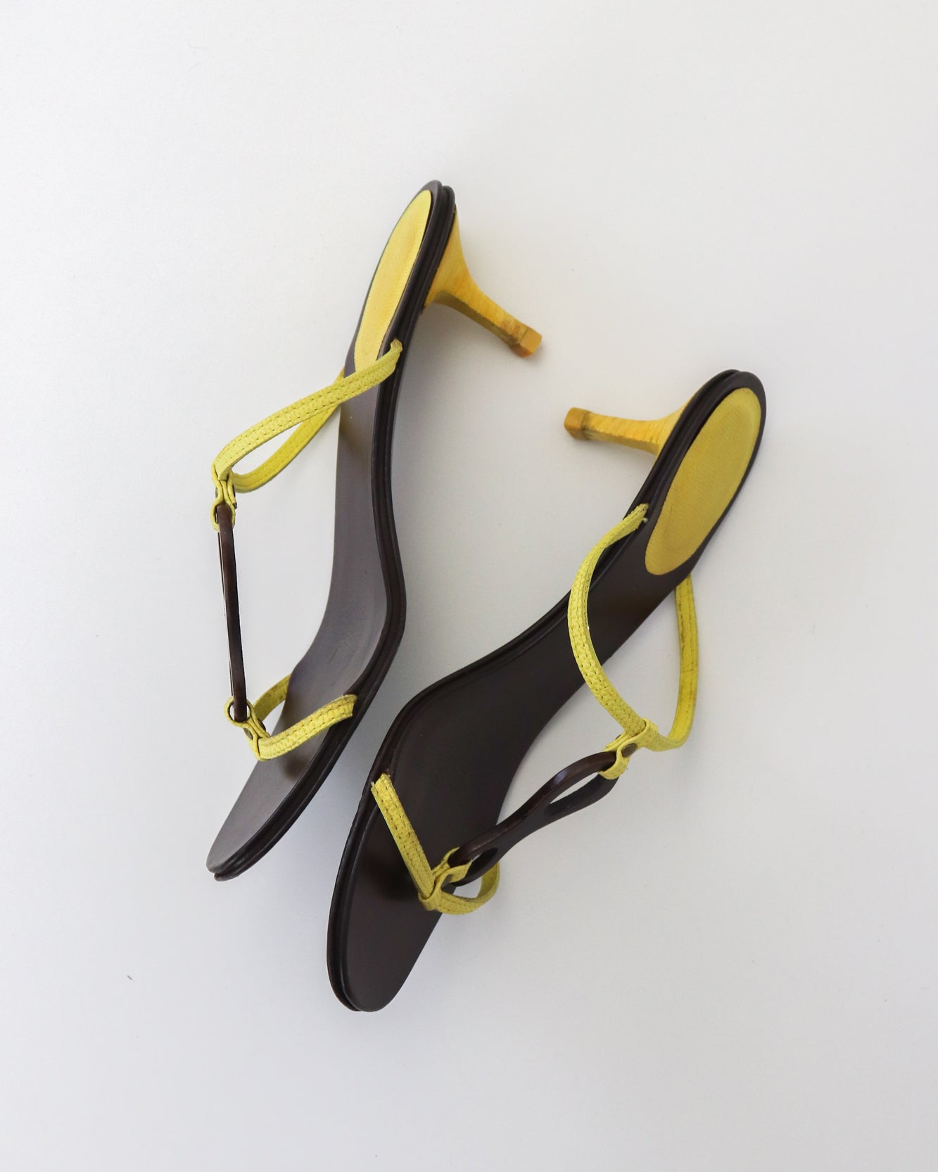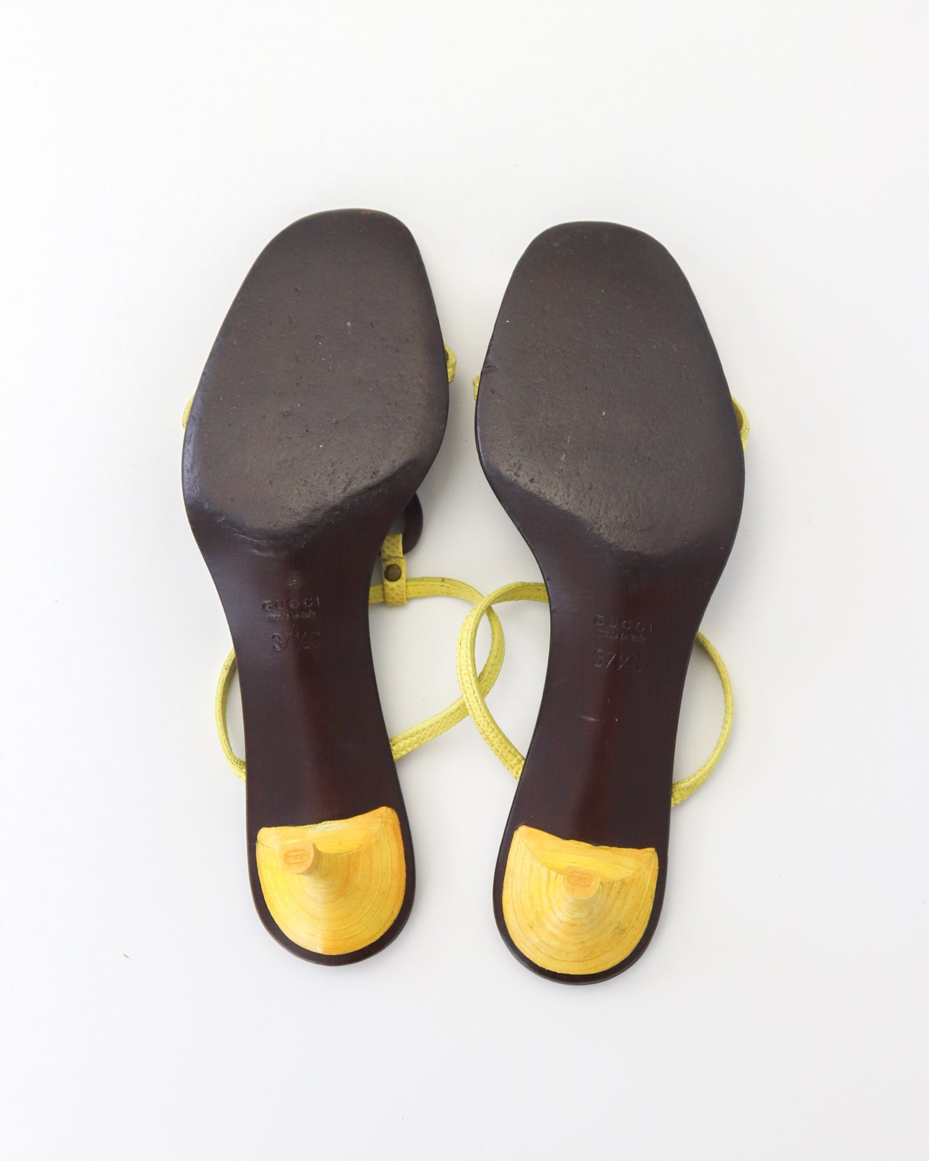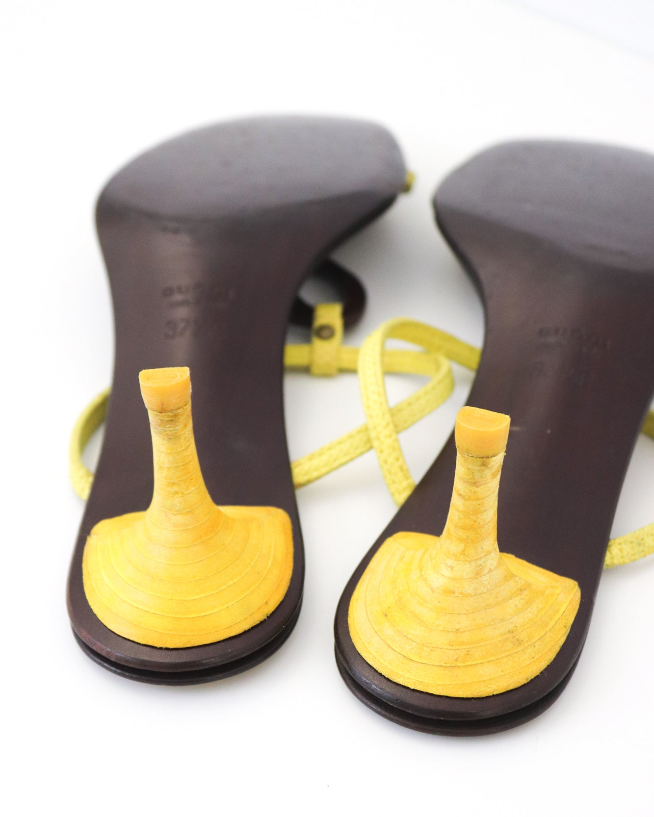 Vintage Gucci by Tom Ford Yellow Reptile Leather Kitten Heel Mules