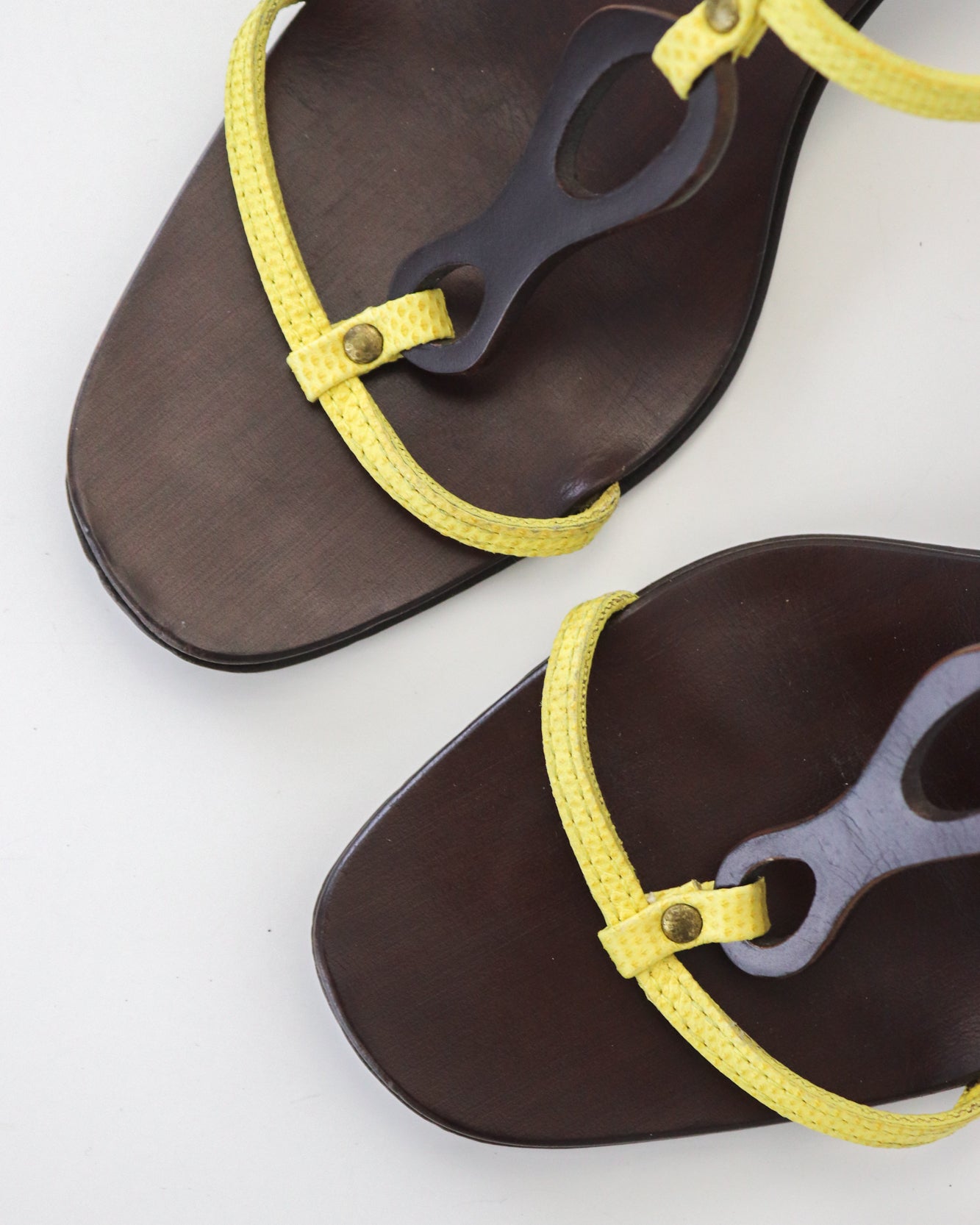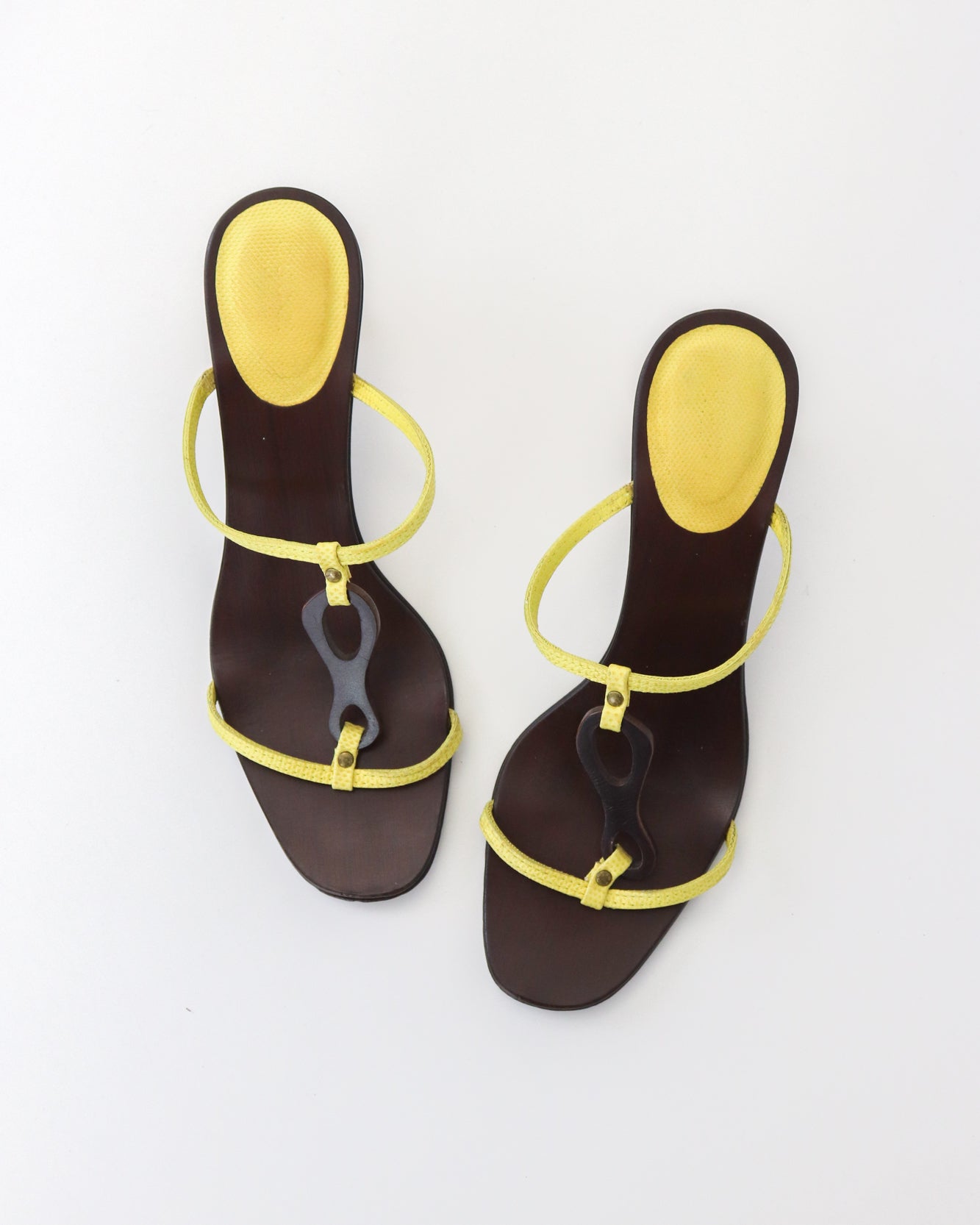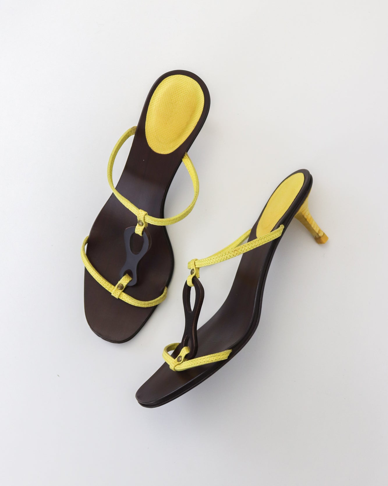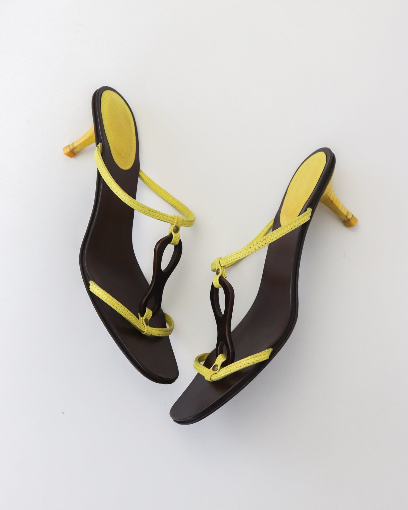 Vintage Gucci by Tom Ford Yellow Reptile Leather Kitten Heel Mules