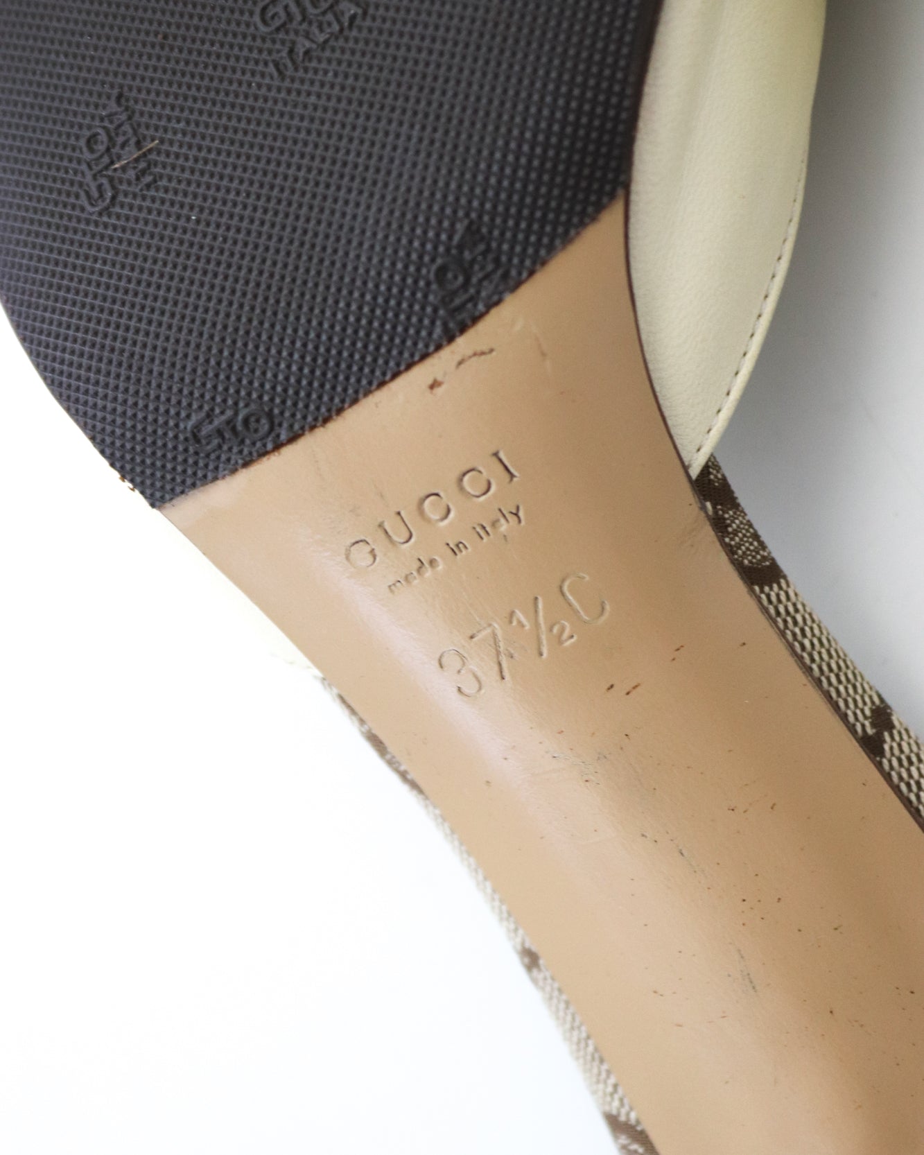 Vintage 2000s Gucci Monogram Canvas Bow Detail Mule Heels / 37.5 (US 7.5)