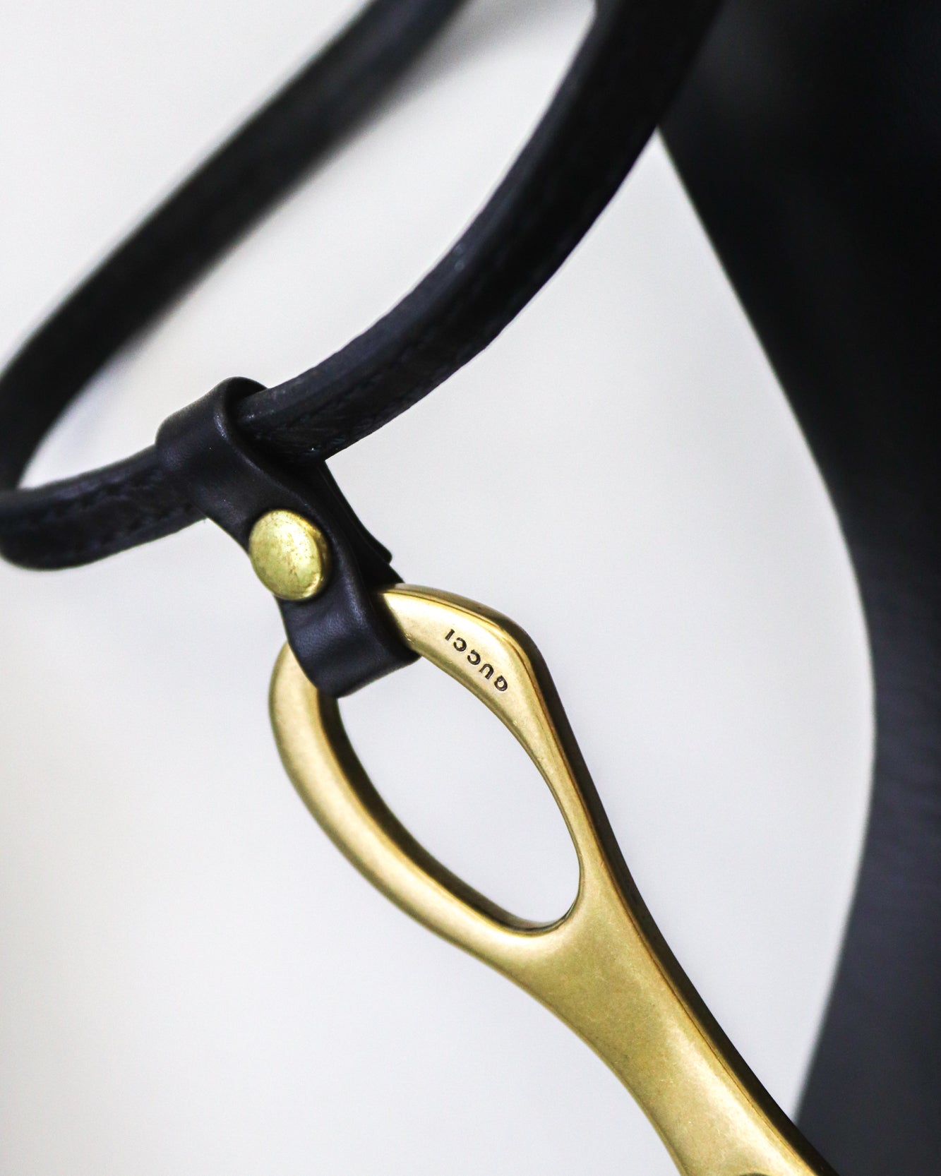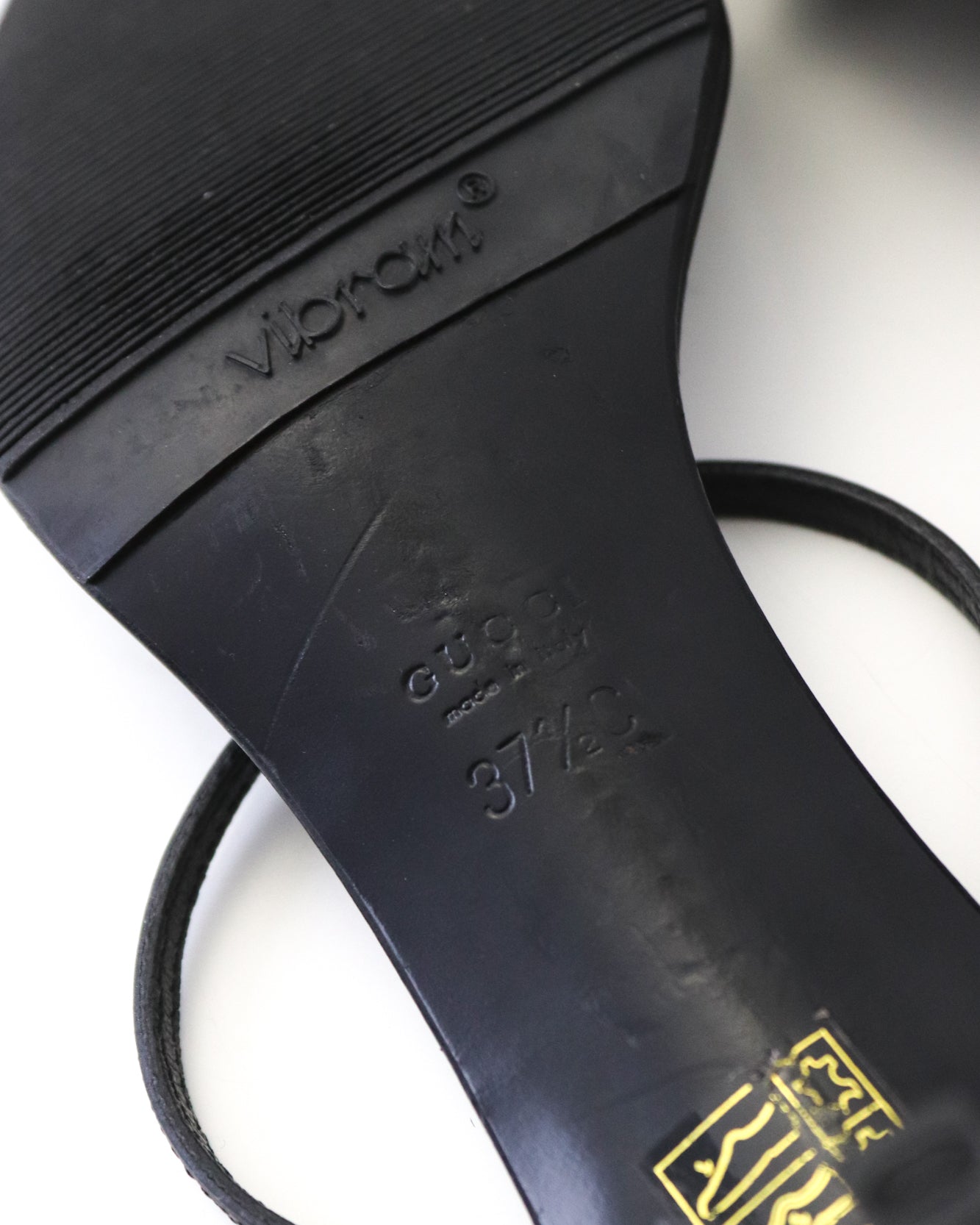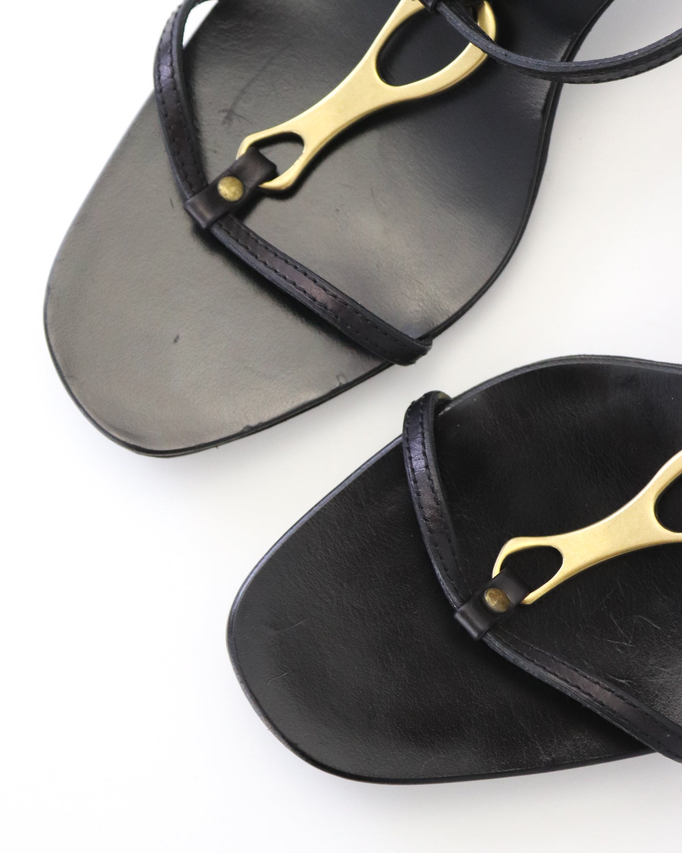 Vintage Gucci by Tom Ford Black Leather Kitten Heel Mules Horsebit Detail
