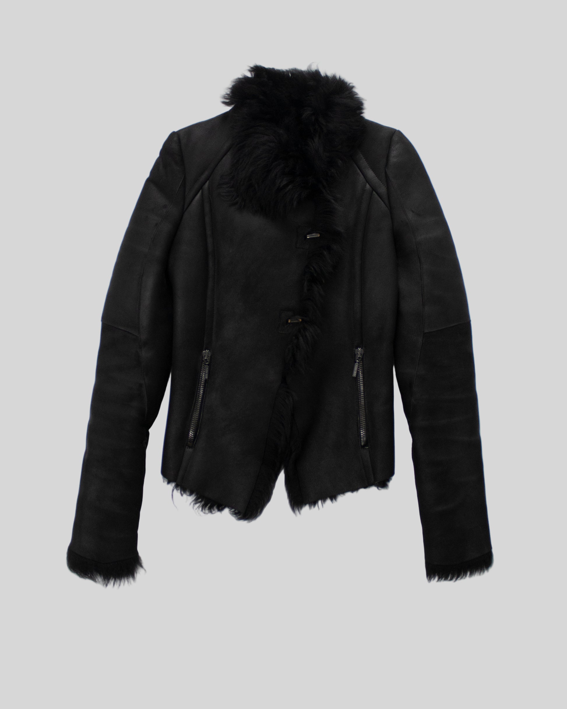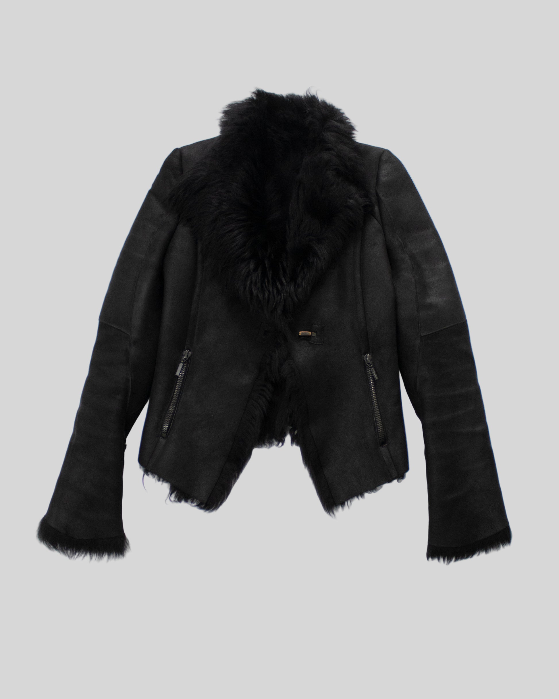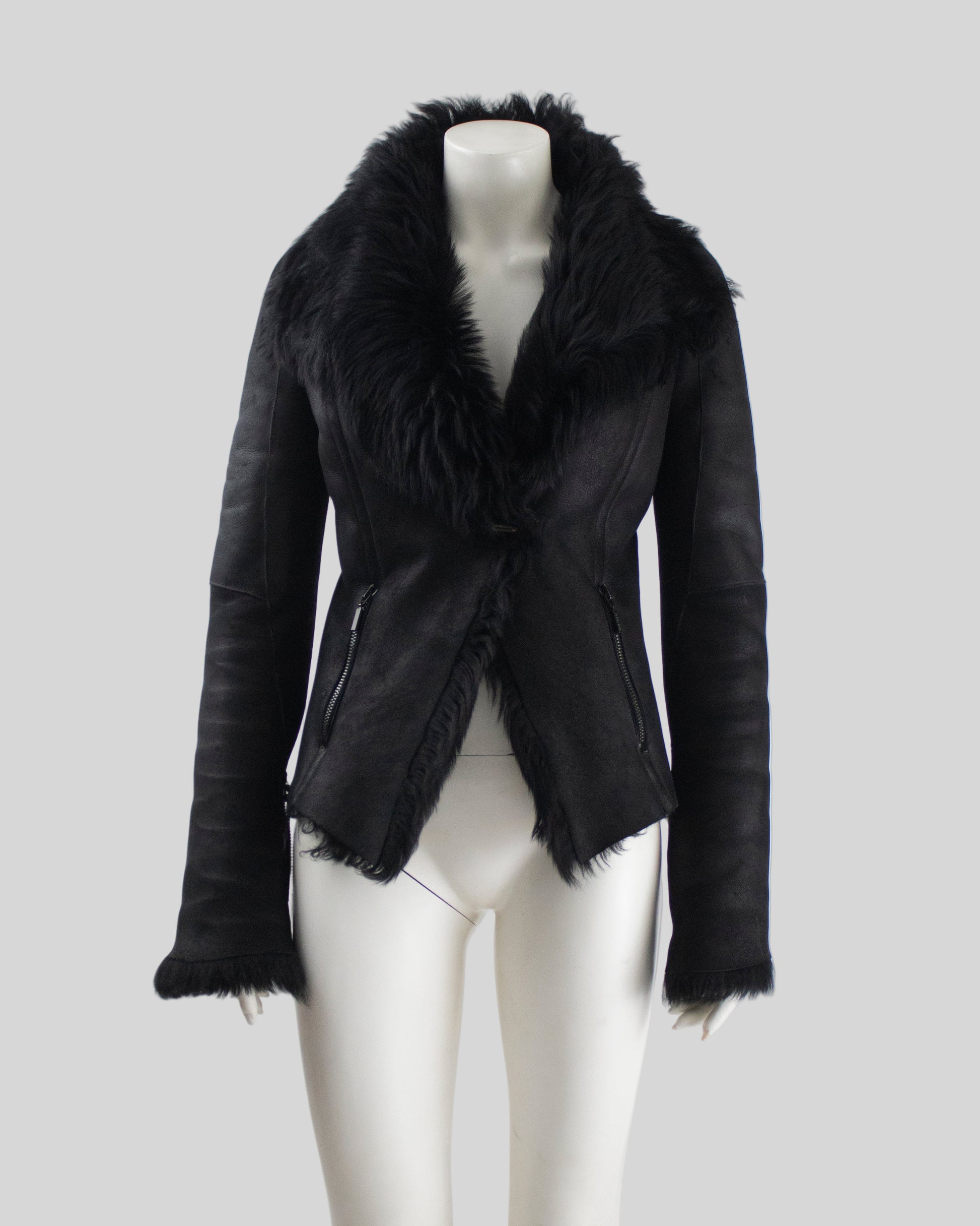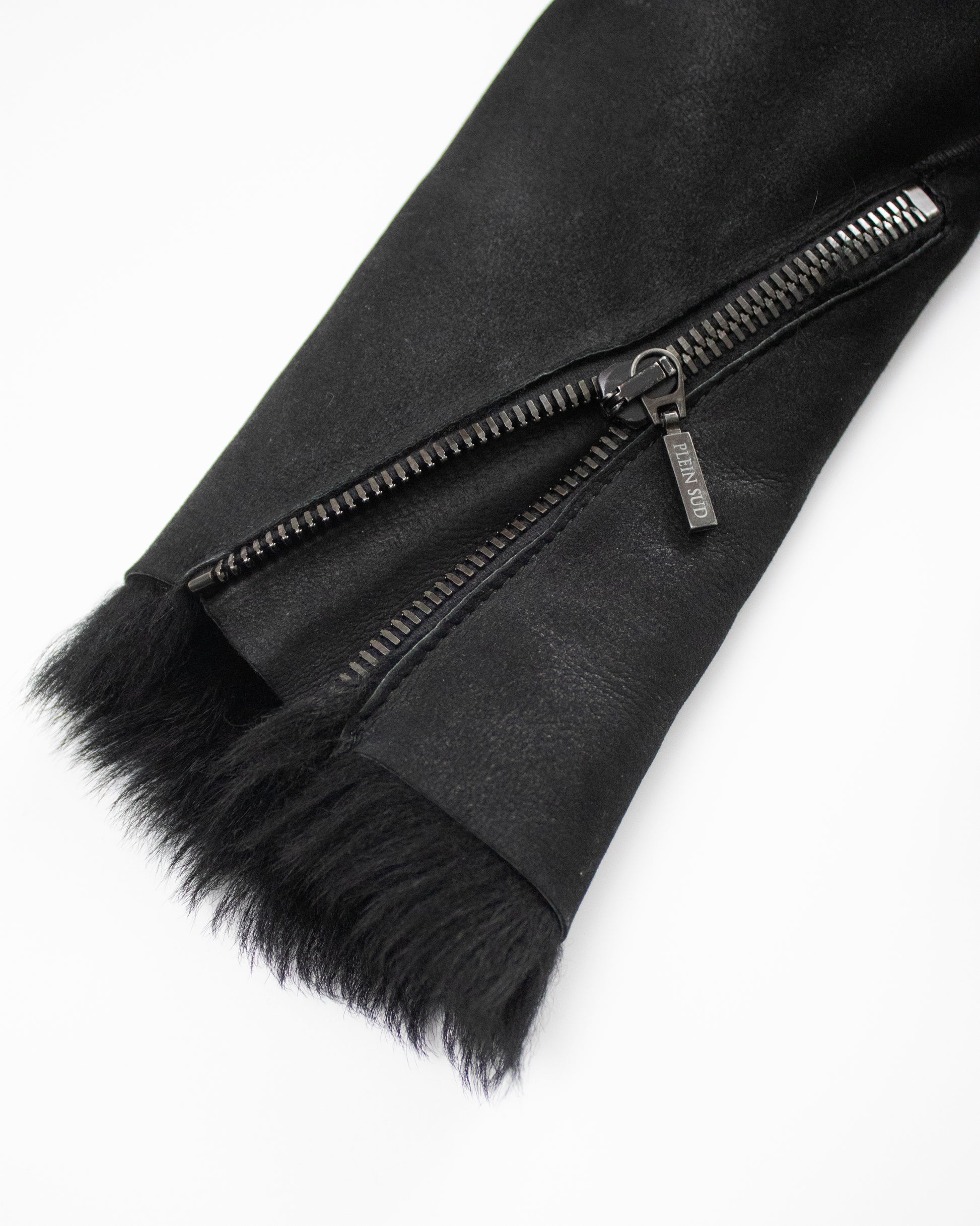 Vintage Plein Sud Black Leather Shearling Jacket / IT 40 (XS)