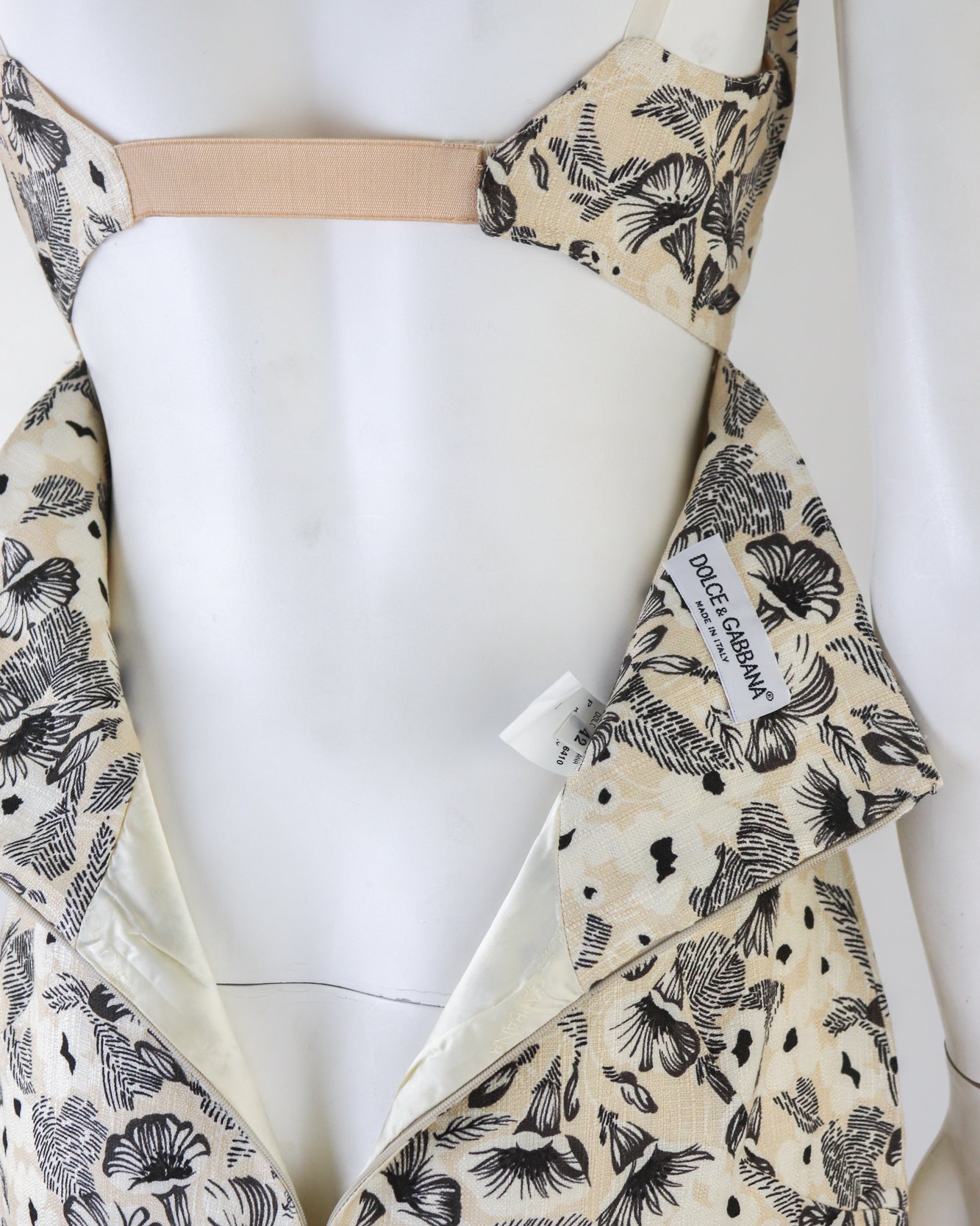 Vintage S/S 1997 Dolce&Gabbana Ivory Floral Print Linen Dress / IT 42 (S)