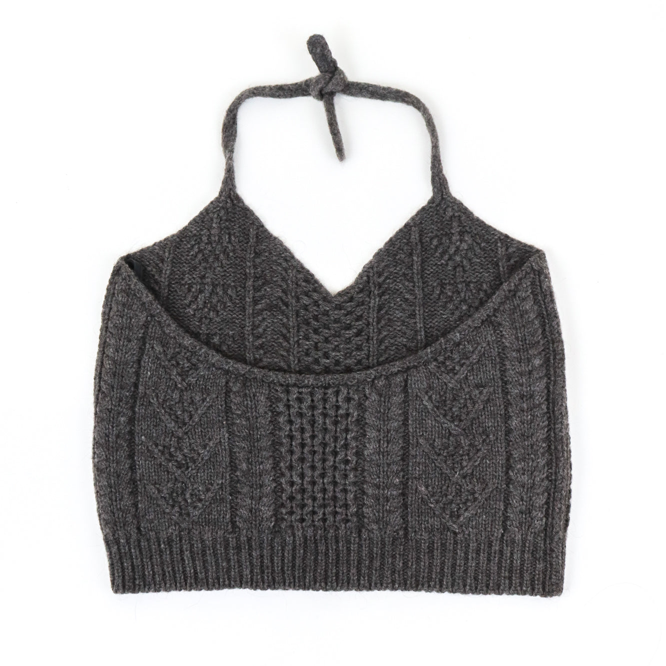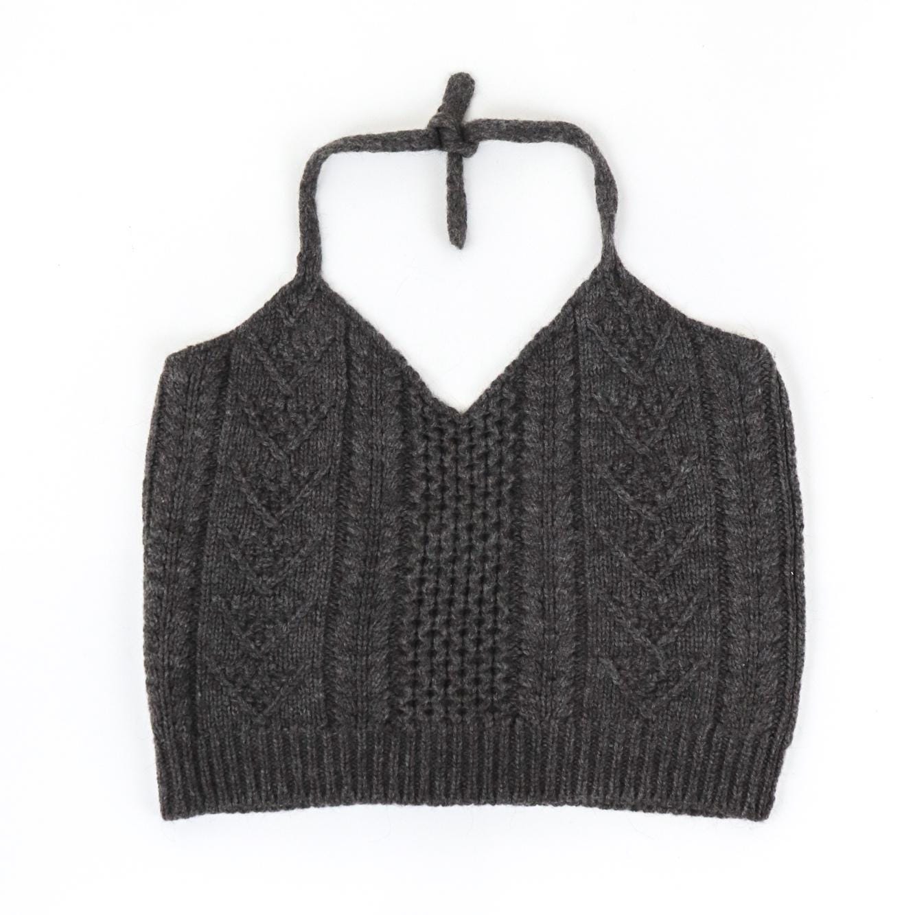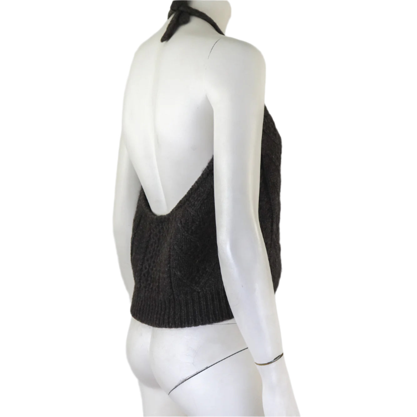 Vintage S/S 2002 Prada Wool Alpaca Chunky Knit Halterneck Runway Top / IT 42 (S-M)